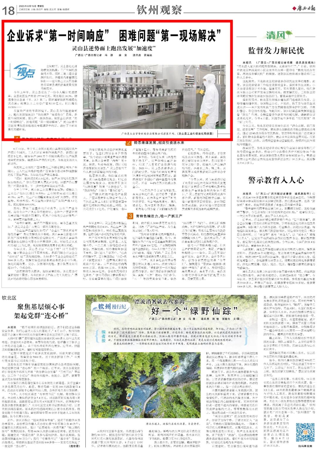 立秋時(shí)節(jié),靈山縣處處涌動(dòng)著發(fā)展熱潮:工廠車間機(jī)器轟鳴不停、項(xiàng)目工地上建設(shè)者揮汗如雨、養(yǎng)殖場(chǎng)內(nèi)禽畜膘肥體壯……這片熱土正以昂揚(yáng)姿態(tài)書寫著縣域經(jīng)濟(jì)高質(zhì)量發(fā)展的新篇章。