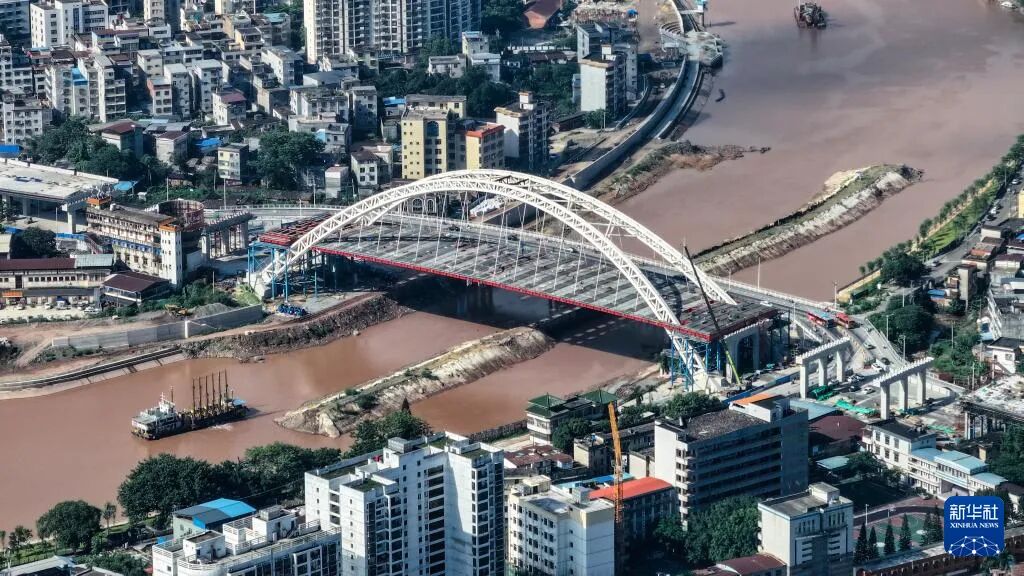 這是建設中的欽州三橋(8月24日攝,無人機照片)。新華社記者 張愛林 攝